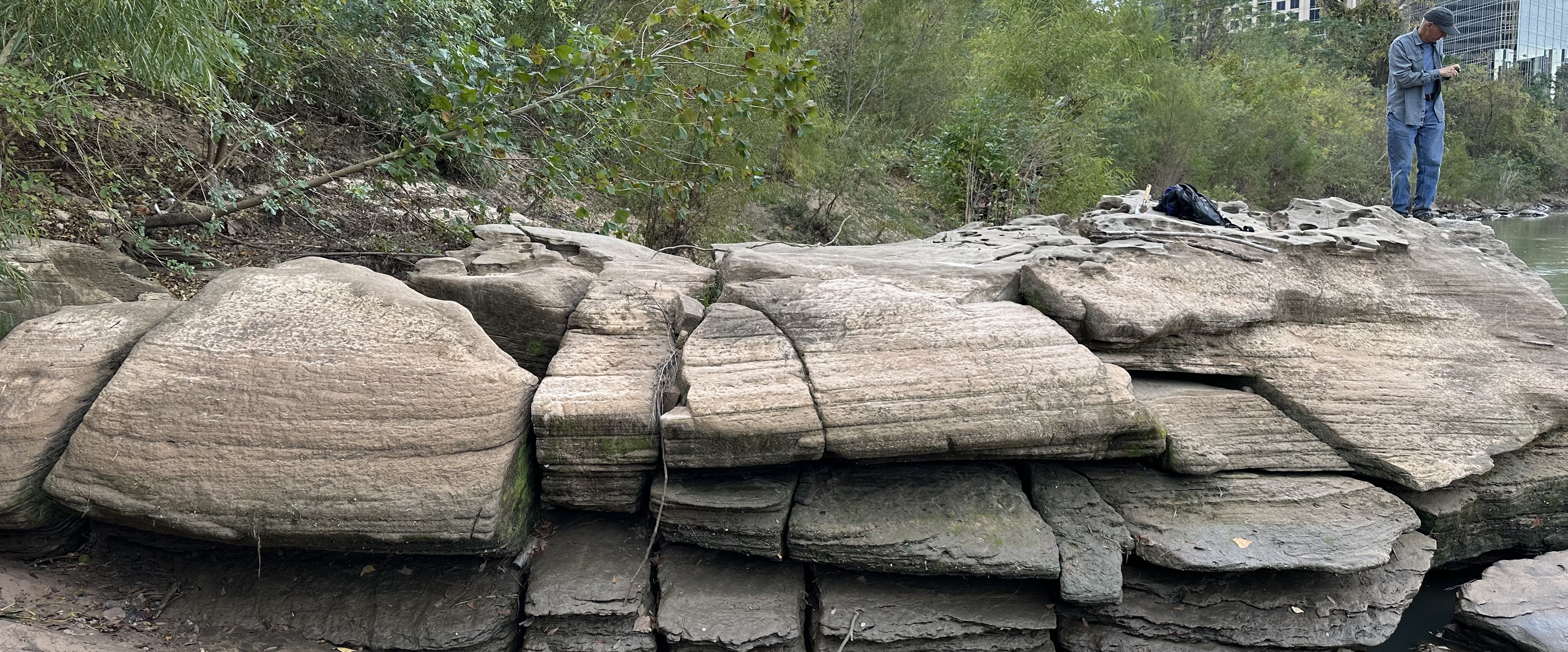 The Beaumont Formation (Late Pleistocene) is exposed along the embankments of Buffalo Bayou that transect the greater Houston area. These outcrops have been under-studied, in part, because dense vegetation, wildlife, and treacherously steep embankments limit their access from the surface. However, with the use of kayaks, Beaumont strata can be observed during very low-water stages of Buffalo Bayou.