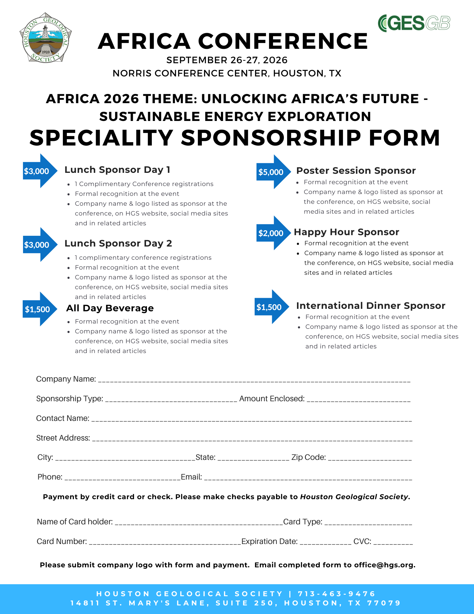 The conference theme of Unlocking Africa's Future: Sustainable Energy Exploration points both to the desire to continue to explore for the continent’s (and world’s) energy needs, and in ways that combine local skills to address uneven access to, and distribution of, energy resources. To that end, we are including a session featuring the best Africa-focused presentations from the 2025 Switch Energy Competition. We also plan a related Thematic Issue of the HGS Bulletin, so prepare for the possibility of being invited to publish your talk or poster. HGS initiated the practice in 2024 with three conference presentations (including a keynote and the Danforth-Bate Best Talk). Check them out in the December 2024 issue of the HGS Bulletin, which, with another 60-odd geotechnical societies’ publications, is available online at AAPG’s DataPages (https://www.datapages.com/content-partners).